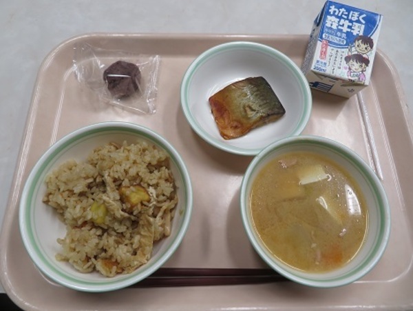 本日の給食は、「お彼岸献立」と題して、「秋の香りご飯やおはぎ」が提供されました。いよいよ本格的に秋を感じたいものです。