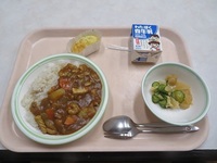 今日の給食では、手作りの「福神漬け」と「スイートポテト」が提供されました。メインの「シーフードカレー」はもちろんボリューム満点でしたが、手作りとは思えないほどおいしい2つの料理に感動してしまいました!