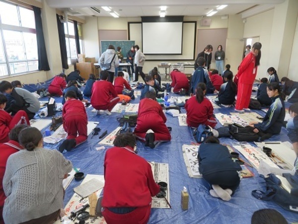 13日(土)に、「上チャレ書初め講習会」が開催されました。上チャレに参加している生徒に加え、部活単位での参加もあり、約50名近くの生徒が書初めに取り組みました。この日は、講師に埼玉大学の学生さんと浦和北高校の先生と生徒さんをお迎えし、上中生一人ひとりに丁寧な指導を行っていただきました。