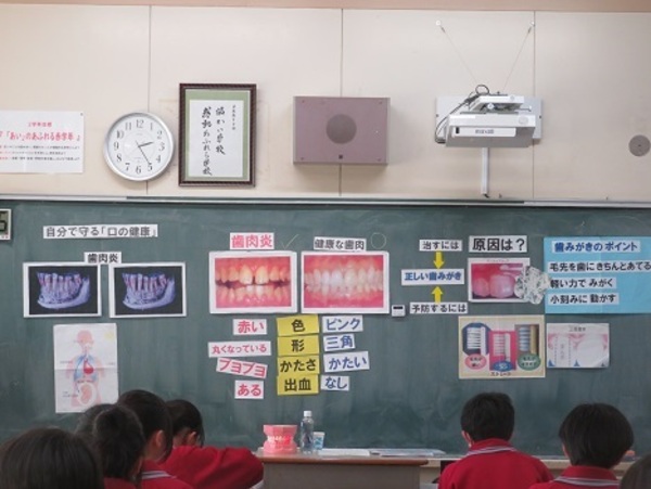 本日の5時間目、2年生を対象に、「歯の健康指導教室」が行われました。埼玉県歯科衛生士会の歯科衛生士さんが各クラスに1人ずつ入り、生徒一人ひとりに歯周病や歯・口の健康と全身の健康の関連性、日常の歯みがき習慣、自分に適した歯みがき方法を身に付ける等のねらいとしてご指導いただきました。カラーテストを行うと、自分自身の歯みがきについて改善すべきところがとてもよく分かります。今回の指導教室を踏まえ、ぜひ歯を大切にすることを心掛けてほしいと思います。