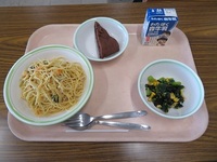 明日のバレンタインデーにちなみ、本日の給食では「バレンタイン献立」を題し、「手作りチョコブラウニー」が提供されました!ボリューム感満載のブラウニーでした!!