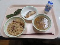 本年度の給食も今日と明日の2日間となりました。今日は、郷土料理:新潟県と題して、「醤油赤飯」「のっぺ」が提供されました。新潟県長岡市では、「ささげが手に入りにくかった」「醤油や酒の醸造が盛んな土地」などの理由から、醤油で色付けしたもち米が「赤飯」と呼ばれるようになったとされています。「のっぺ」は、とろみの強い煮物でした。