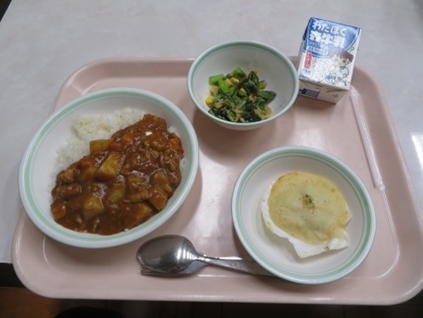 給食は本日で令和7年度が終了となり、「ポークカレーライス、ホタテグラタン、海藻サラダ、牛乳」が提供されました。本年度、たくさんの給食メニューを紹介してきましたが、改めて給食に携わった皆さまに感謝申し上げます。ありがとうございました。そしてごちそうさまでした。